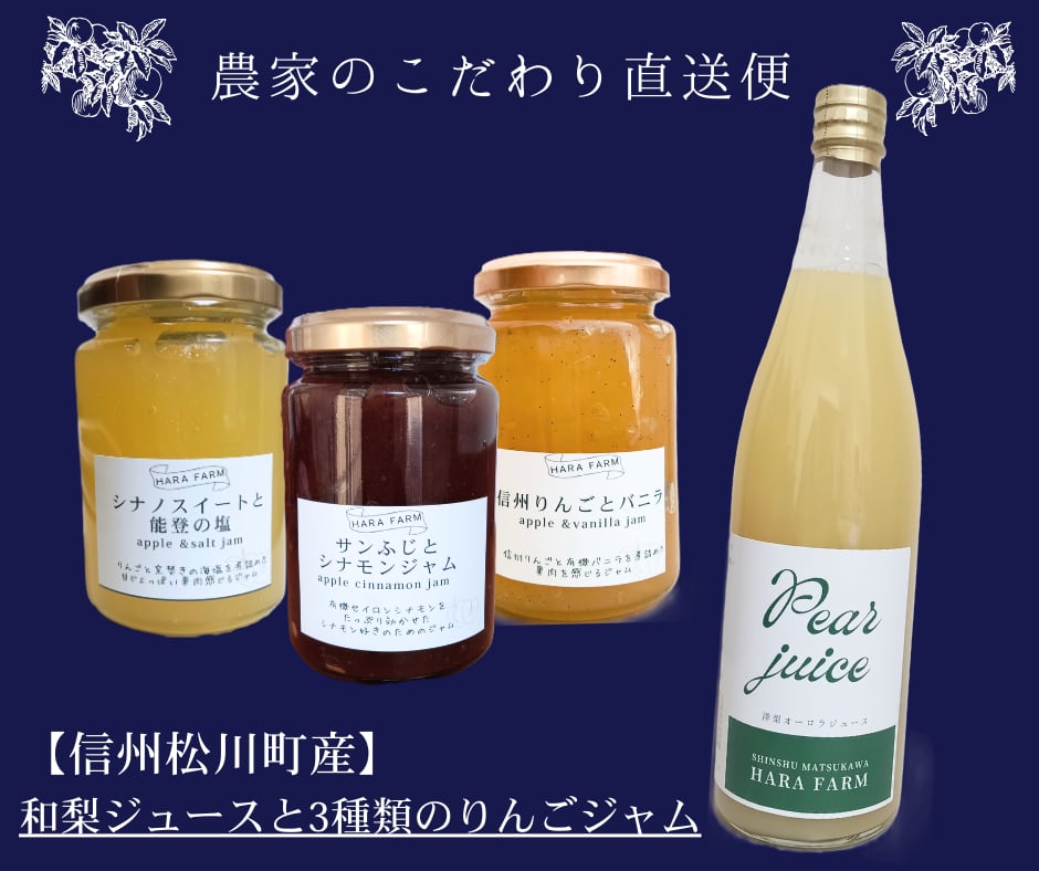 【信州】洋梨ジュース&こだわりのりんごジャム3種類セット