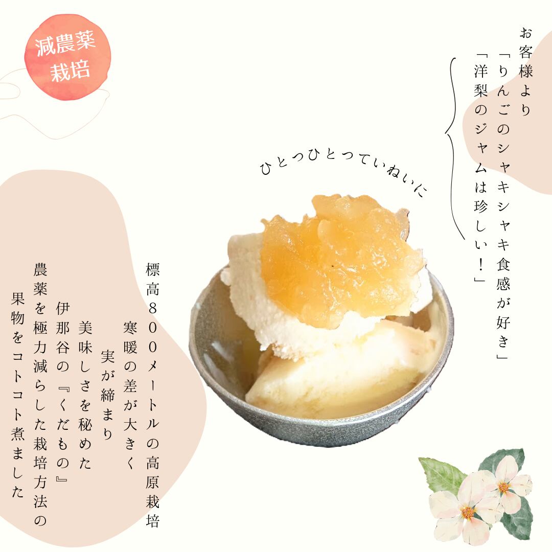 ・サンふじとシナモンジャム :りんご(長野県松川町産サンふじ)、砂糖(てんさい糖)、シナモン