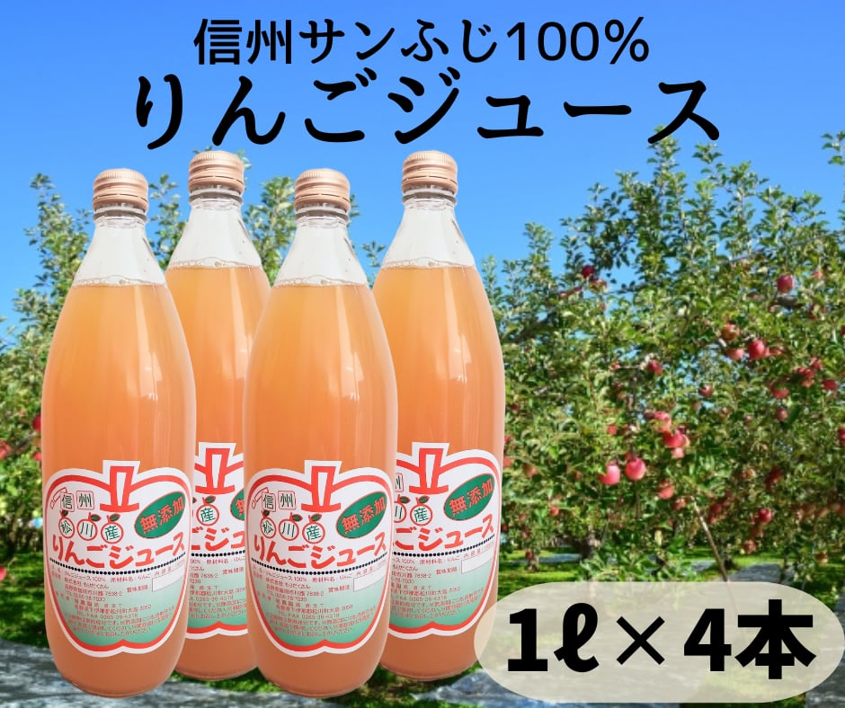 【信州】サンふじ100%りんごジュース 1ℓ✕4本*保存料無添加